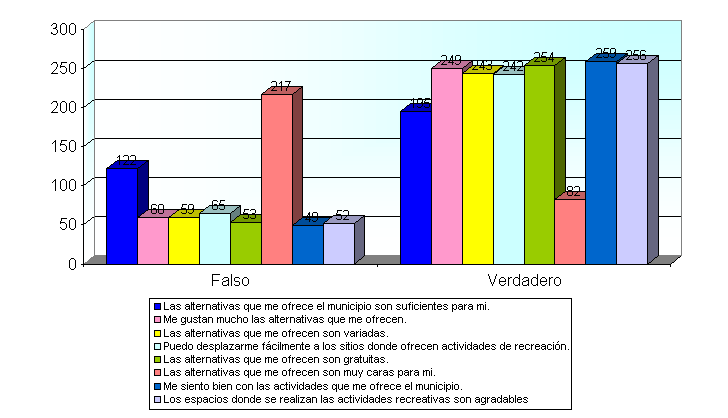 Respecto a las opiniones de los adultos mayores sobre la oferta de recreaci�n en el municipio se encontr� que del total de 317 que contestaron a la primera alternativa, 195 consideran que la oferta recreativa no es suficiente. En las restantes las frecuencias muestran una opini�n positiva sobre los mismos. (Figura No. 5).