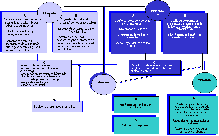 Por ello, se propone seguir 3 Momentos Metodol�gicos en la gesti�n conducente a sacar adelante un proyecto de Ludotecas, no solo para poder inaugurarlas sino para garantizar su sostenibilidad y el logro de esos resultados de apoyar el desarrollo integral. �